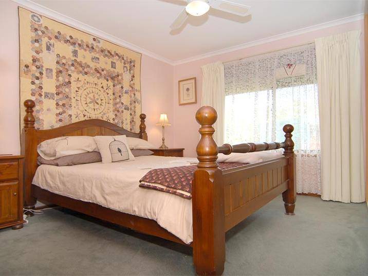 With beautifully presented gardens including some fruit trees, the backyard allows for some outdoor entertaining with the pitched roof, timber pergola, just the right amount of space and a tool shed.