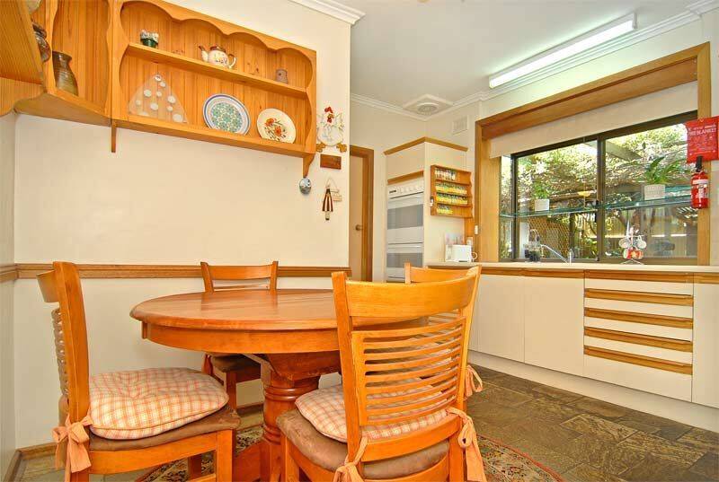In the generous kitchen you will find a bay window above the double sink that truly brings the lush greenery of the garden into the home. Ample cupboard space, an electric wall oven with a separate gas cook top, built in pantry and space for dining makes up the rest of this homely kitchen that is both pleasing to the eye and functional.