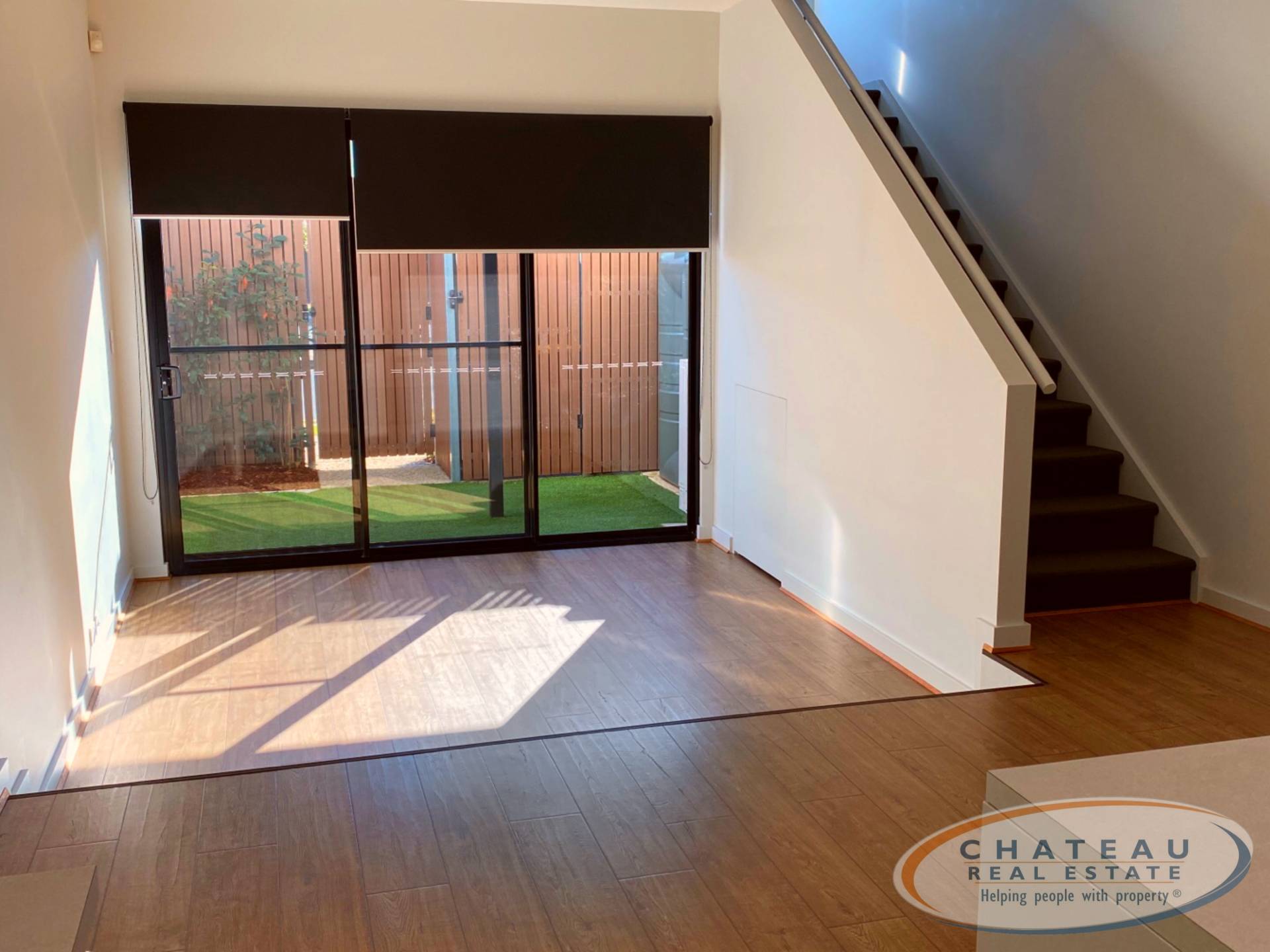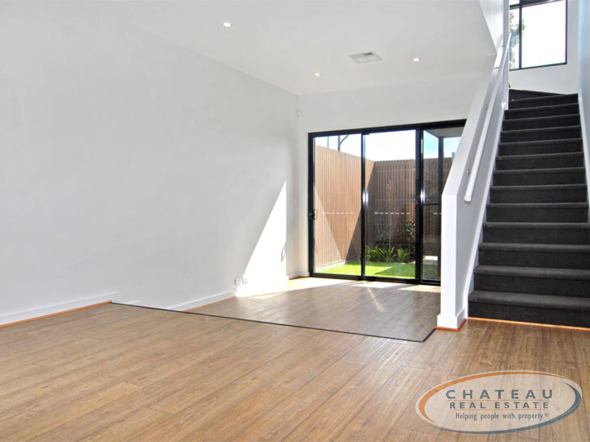 - Open plan living area with sunken lounge and staking doors that open out to private courtyard